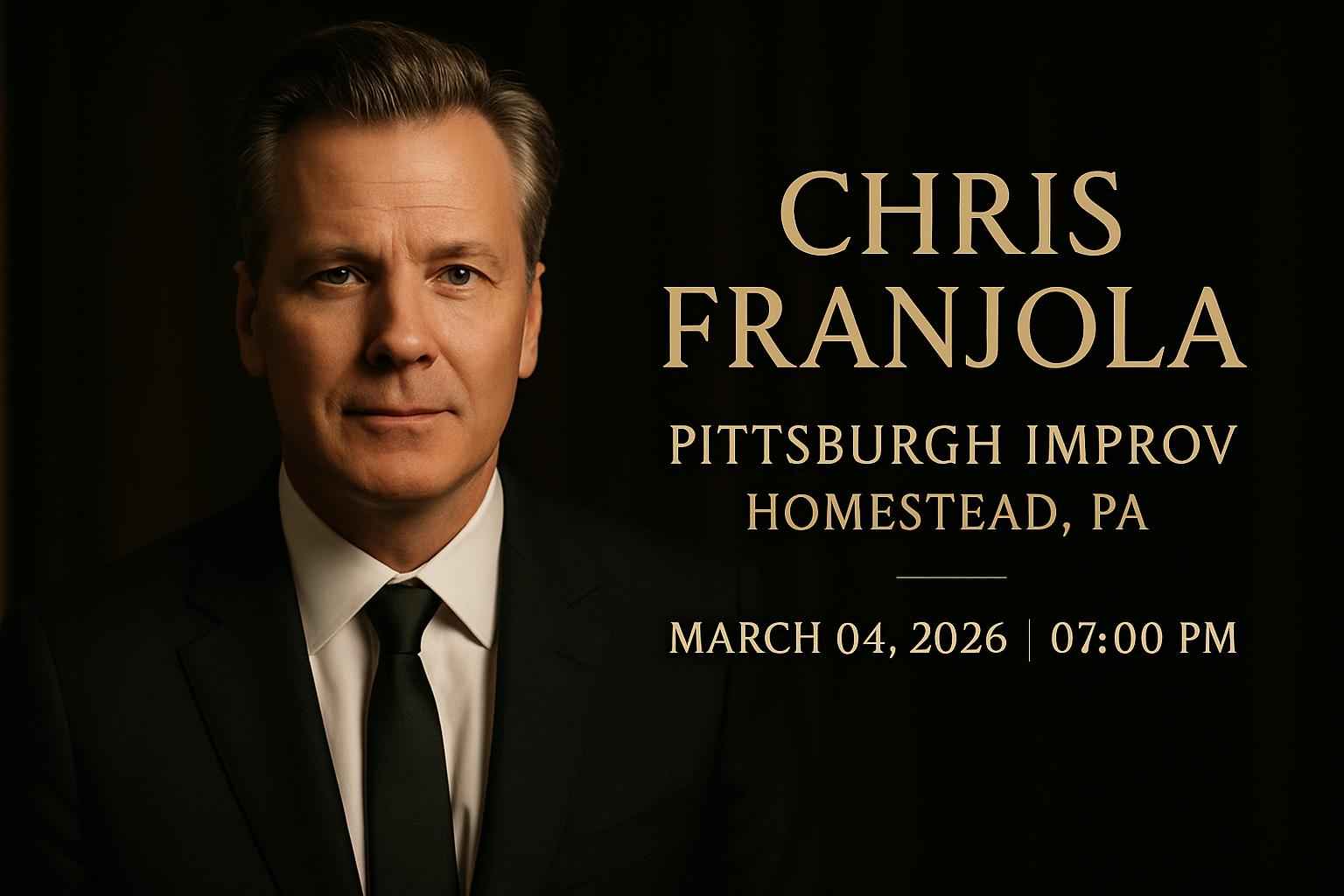 See Chris Franjola live at Pittsburgh Improv located at 166 E Bridge St Homestead PA 15120 This special night of stand-up comedy starts at 7 PM on March 4 2026 Enjoy easy access to parking plenty of dining options nearby and a vibrant crowd Book with RSVP Event Agency for verified tickets and secure checkout