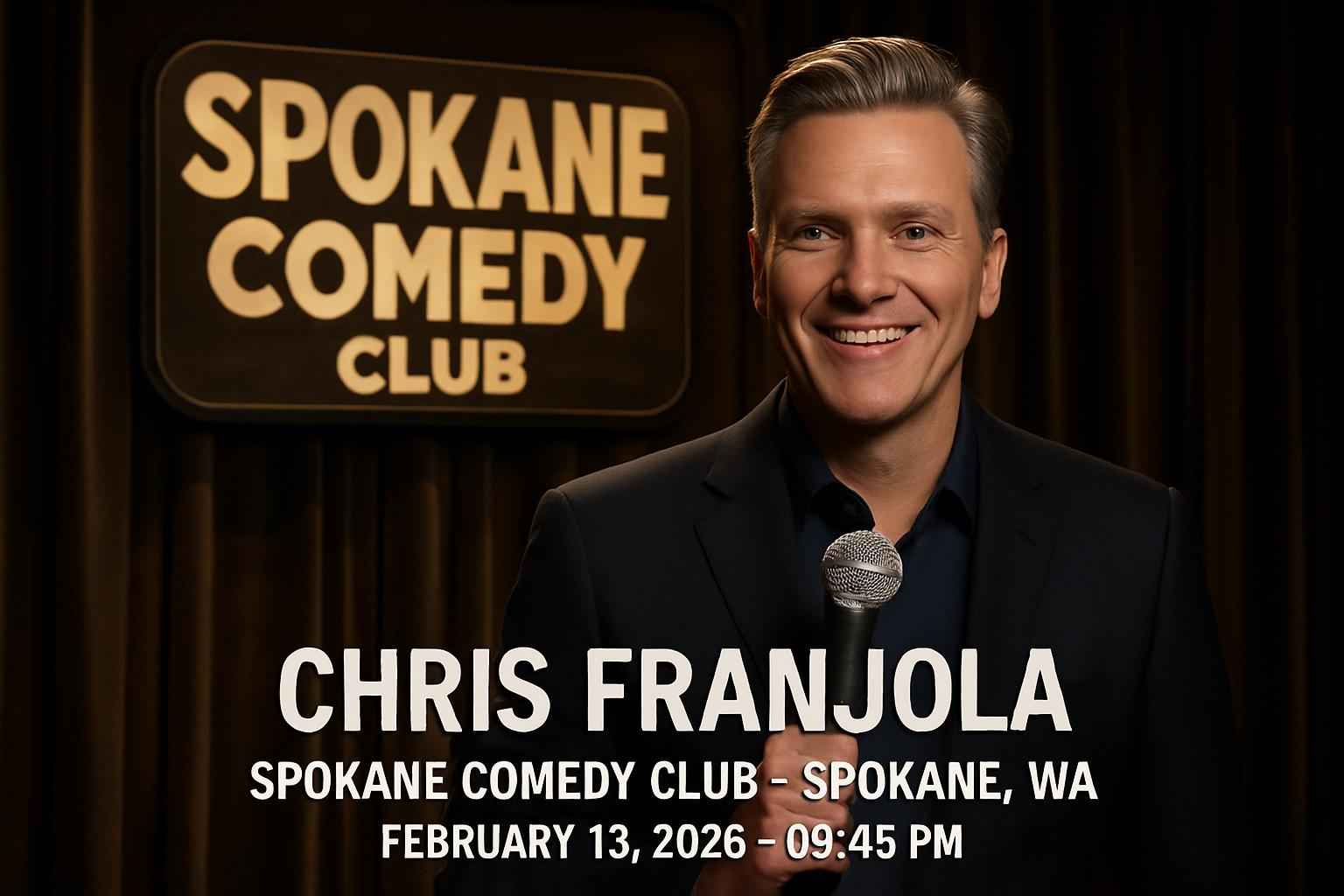 Chris Franjola performs at Spokane Comedy Club on February 13 2026 at 0945 PM. Early booking is recommended for best seat selection.