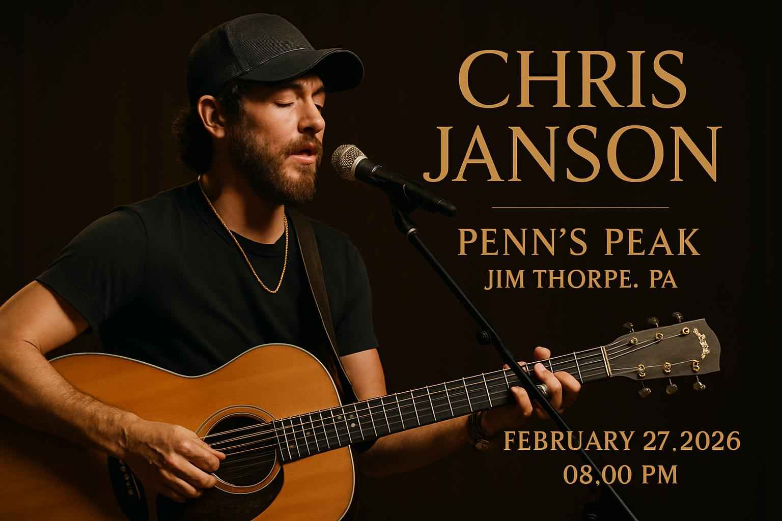 Chris Janson performs at Penns Peak Jim Thorpe PA on February 27 2026 at 8 PM.