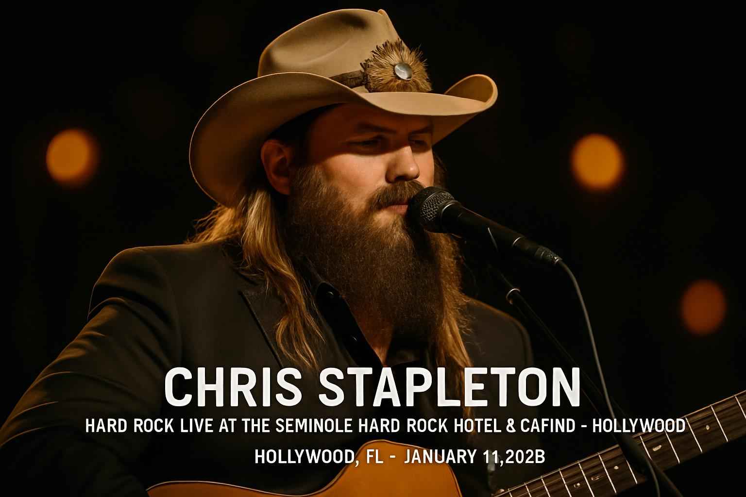 Chris Stapleton performs at Hard Rock Live Seminole Hard Rock Hotel & Casino Hollywood FL on January 11 2026 at 7:30 PM.