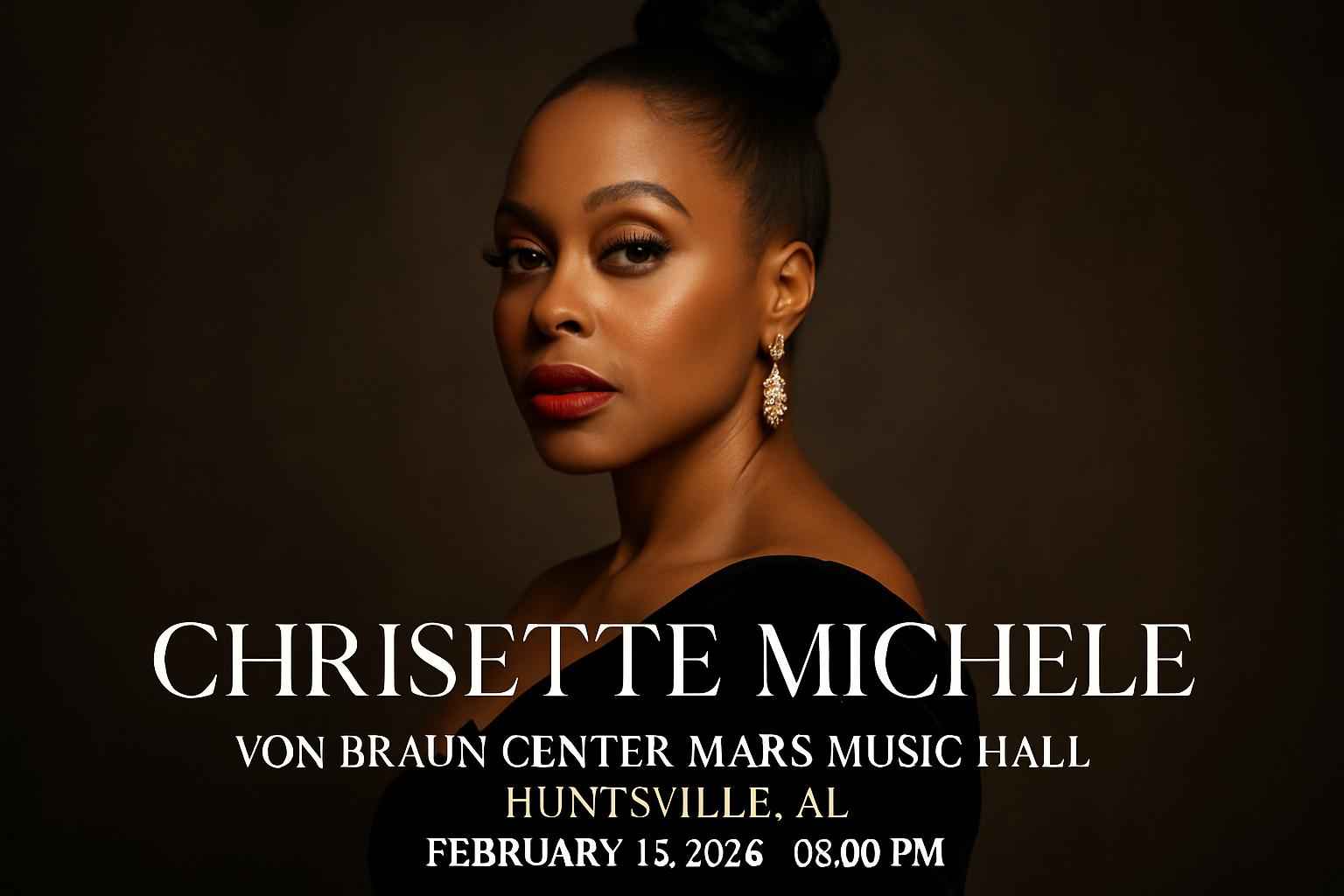 Join Chrisette Michele at the Von Braun Center Mars Music Hall for an electrifying live performance on February 13 2026. Doors open at 7 PM with the show starting at 8 PM. This premier Huntsville music event draws fans searching for R and B concerts, live music in Huntsville, and top Alabama music events. Secure your seat and enjoy world-class acoustics and a vibrant concert atmosphere.