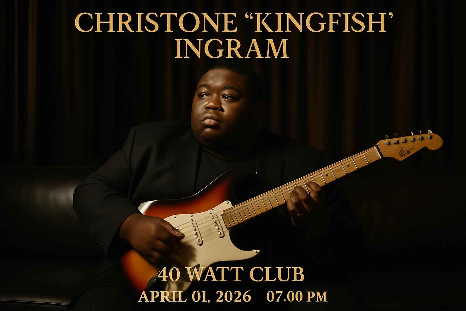 Christone Kingfish Ingram brings his acclaimed blues guitar and soulful vocals to the legendary 40 Watt Club in Athens Georgia. This highly anticipated concert starts at 7 PM on April 01 2026. The venue is located at 285 West Washington Street Athens GA and is known for its vibrant live music atmosphere and central location near downtown Athens. Arrive early to enjoy local dining and nightlife before the show.