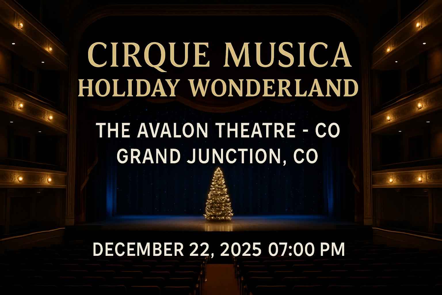 Experience Cirque Musica Holiday Wonderland at The Avalon Theatre in Grand Junction CO on December 22 2025 at 07:00 PM for a night of dazzling performances and festive wonder. This highly anticipated holiday event features breathtaking acrobatics holiday music and family entertainment in one of Colorado’s most iconic venues. Secure Cirque Musica Holiday Wonderland tickets with exclusive RSVP Event Agency promo codes and enjoy unbeatable savings today.