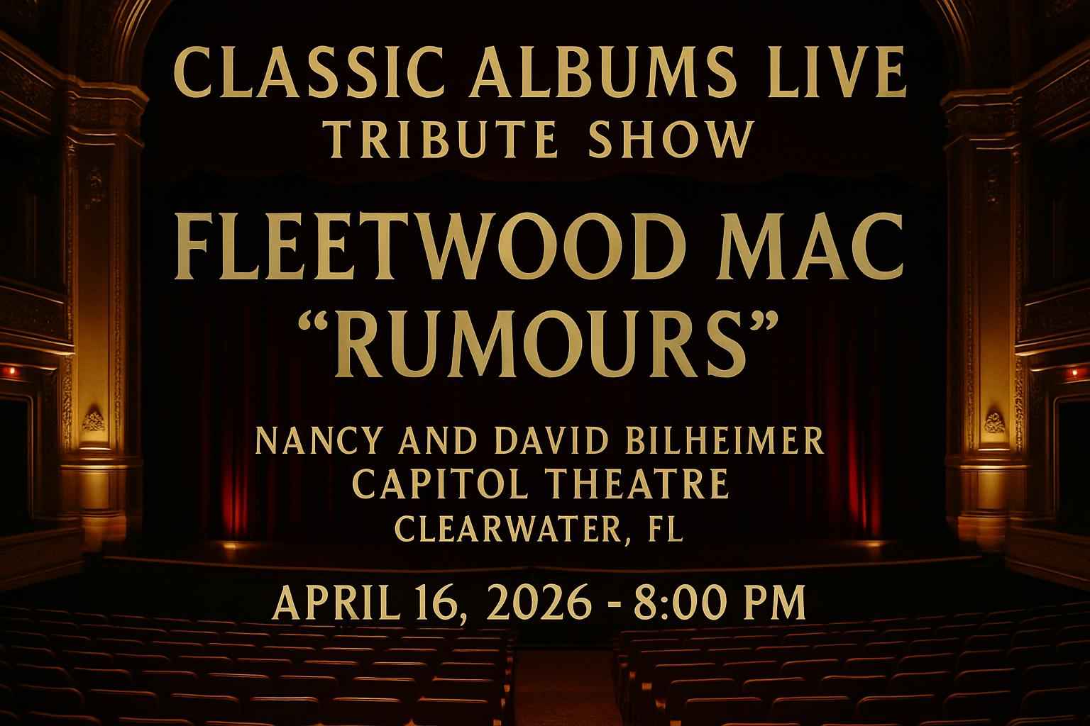Experience the Classic Albums Live Tribute Show featuring Fleetwood Mac – Rumours at the historic Nancy and David Bilheimer Capitol Theatre in Clearwater FL on April 16 2026 at 8:00 PM. This acclaimed event recreates the iconic Rumours album note for note and cut for cut delivering an authentic Fleetwood Mac performance perfect for music lovers in Tampa Bay and Pinellas County. Secure your spot for this unforgettable classic rock concert and enjoy exclusive savings when you use verified RSVP Event Agency promo codes today.