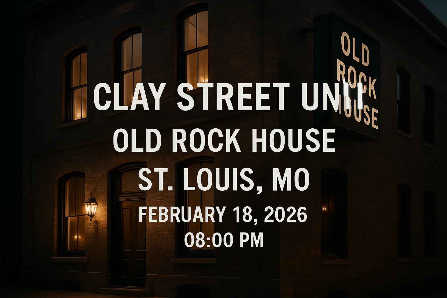 Experience Clay Street Unit live at Old Rock House, St. Louis on February 18, 2026, at 8 PM. Get exclusive discount codes and secure the best seats through RSVP Event Agency. Enjoy an intimate venue, top acoustics, and unbeatable prices with verified tickets and promo codes. Arrive early for a memorable, high-energy concert night with food, drinks, and parking nearby.