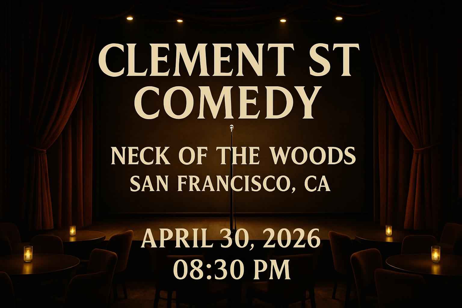 Clement St Comedy is a leading local stand-up showcase with a loyal following in San Francisco. The event features rising stars, seasoned performers, and surprise guests for an unforgettable live comedy show. Located in the heart of the Richmond District, Neck of the Woods is known for its welcoming vibe and excellent acoustics. Attendees enjoy a fun night out, perfect for groups, date nights, or solo adventures.