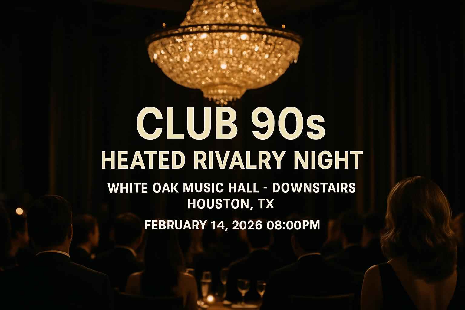 Experience Club 90s Heated Rivalry Night at White Oak Music Hall Downstairs in Houston TX on February 14 2026 at 8 PM. Secure verified promo codes and exclusive discounts through RSVP Event Agency for the top 90s-themed party in the city. This event draws fans searching for Club 90s Heated Rivalry Night tickets Houston White Oak Music Hall parking and cheap entry deals. Find everything you want to know about this all-out 90s dance rivalry night below.