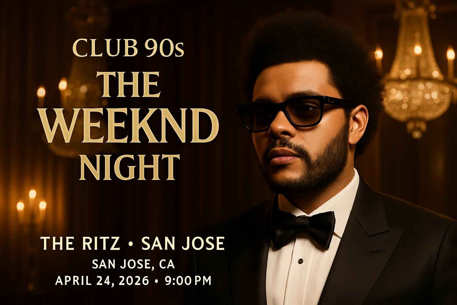 Club 90s The Weeknd Night takes over The Ritz at 400 S First St San Jose CA 95113. Doors open at 900 PM on April 24 2026. This 18+ dance party features non-stop hits from The Weeknd plus iconic 90s tracks. Secure your tickets early for the best seating and VIP upgrades. Find reliable ticket information and access promo codes through RSVP Event Agency.