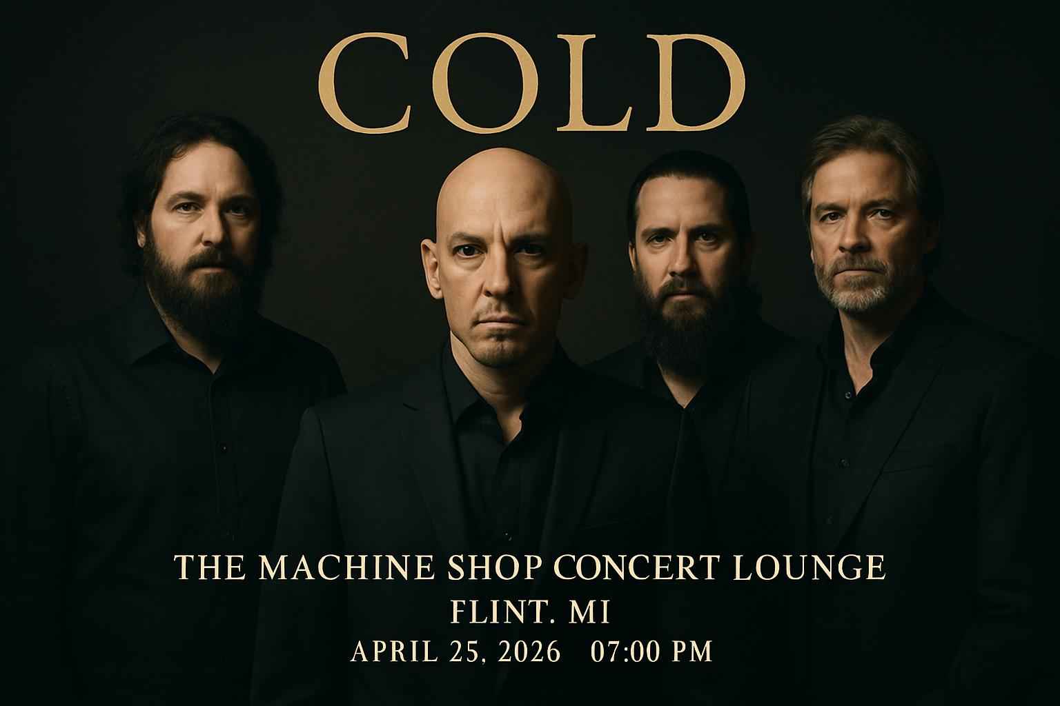 COLD brings their acclaimed live show to The Machine Shop Concert Lounge in Flint MI for an unforgettable night. Doors open at 7 PM on April 25 2026. Guests enjoy premium sound and close-up views in this iconic venue. This event is perfect for fans seeking an authentic rock concert experience in Flint MI. RSVPs are filling up quickly so claim your spot today.
