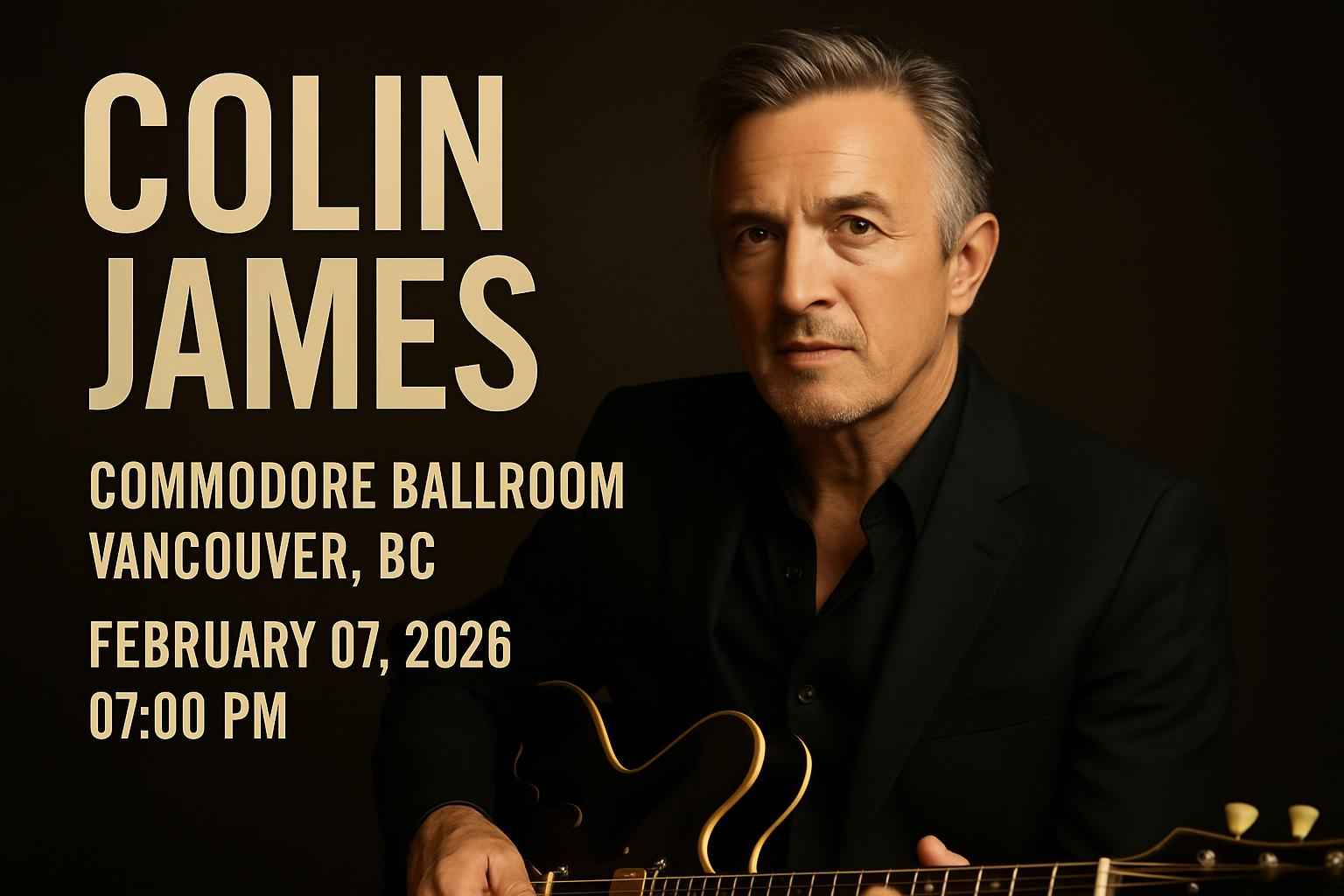 Doors open at 6 PM and Colin James takes the stage at 7 PM on February 07 2026 at Commodore Ballroom.