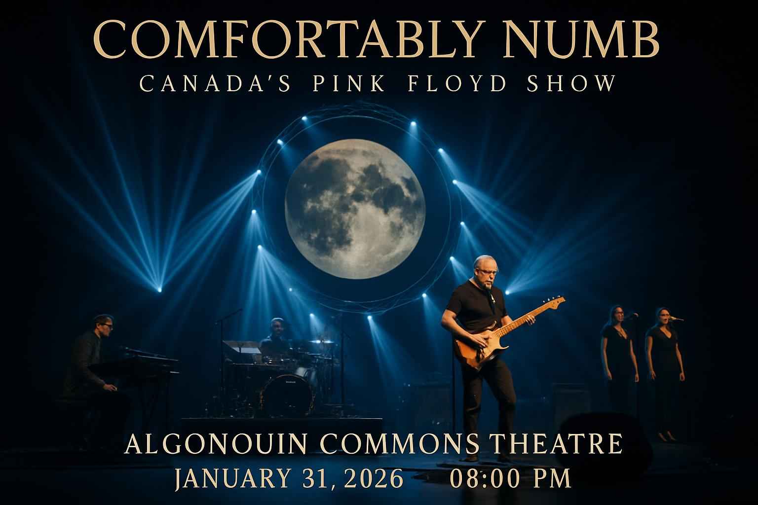 Comfortably Numb is recognized as Canada-s leading Pink Floyd experience offering a live show featuring classics such as Wish You Were Here Shine On You Crazy Diamond and Another Brick in the Wall. Held at Algonquin College Commons Theatre this Nepean concert delivers exceptional sound quality and spectacular lighting effects replicating the legendary band-s atmosphere. Find all ticket info show times and venue details for this one-night-only performance.