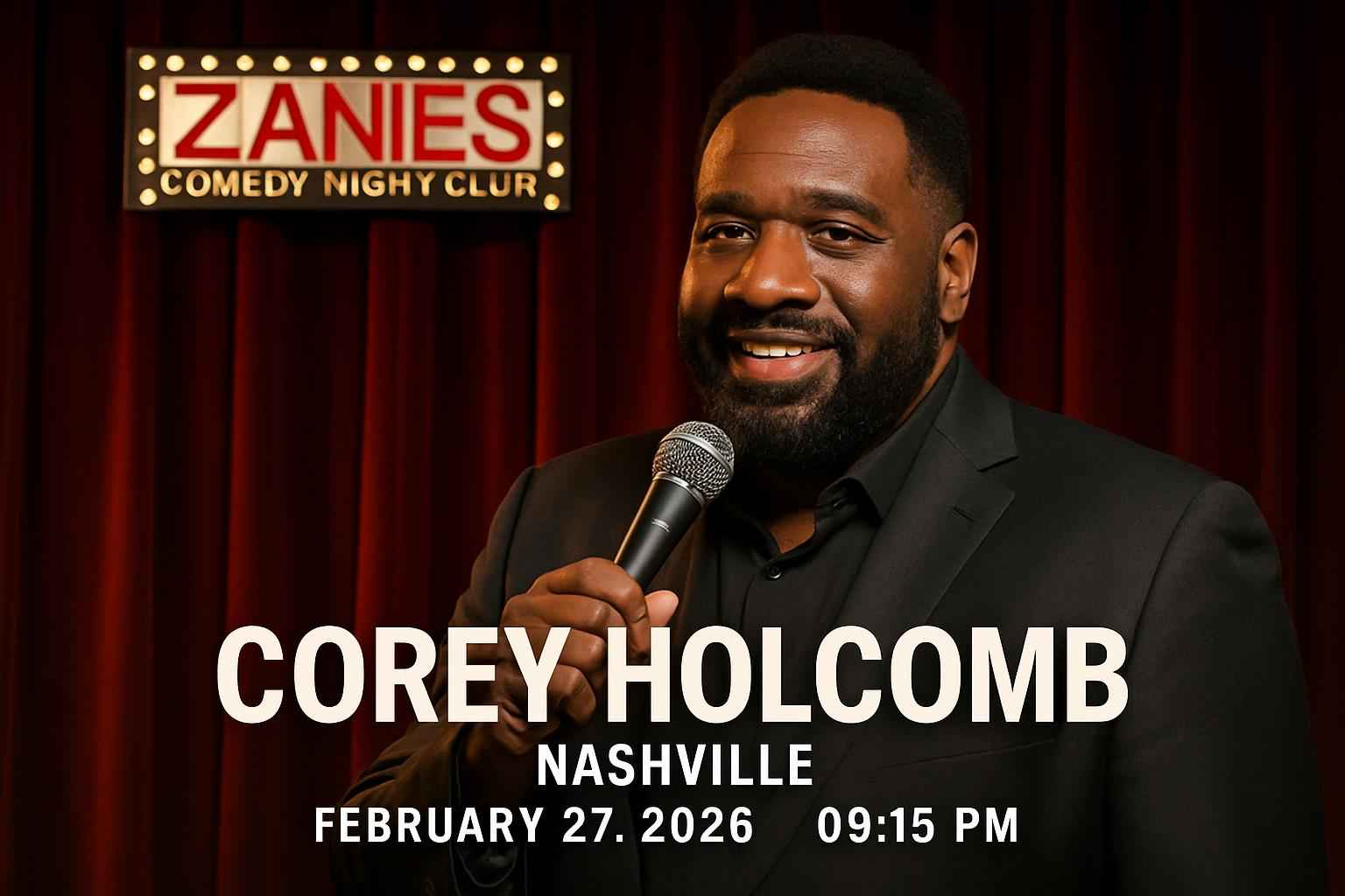 Corey Holcomb takes the stage at 9:15 PM on February 27 2026 at Zanies Comedy Night Club Nashville.
