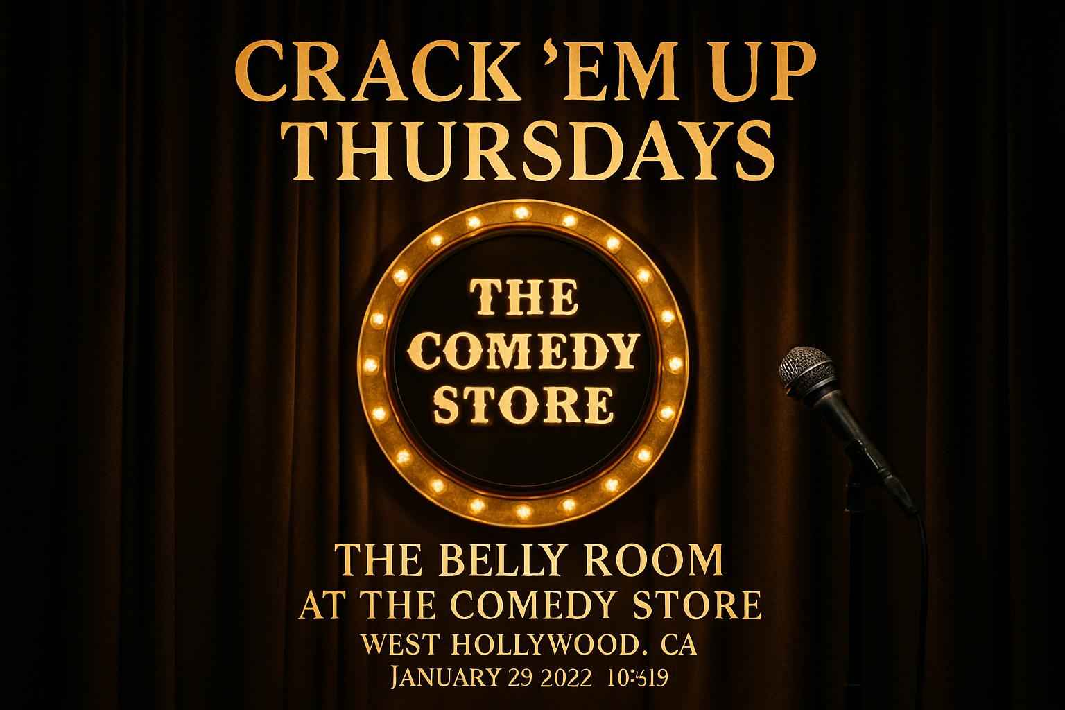 TLDR: Crack-Em Up Thursdays is a weekly stand-up comedy show at The Belly Room, The Comedy Store West Hollywood, on January 29, 2026, at 10 PM. RSVP Event Agency offers exclusive promo codes for up to 20% off tickets. Enjoy rising talent, surprise headliners, convenient parking, and a vibrant LA comedy experience with verified discounts and secure booking.