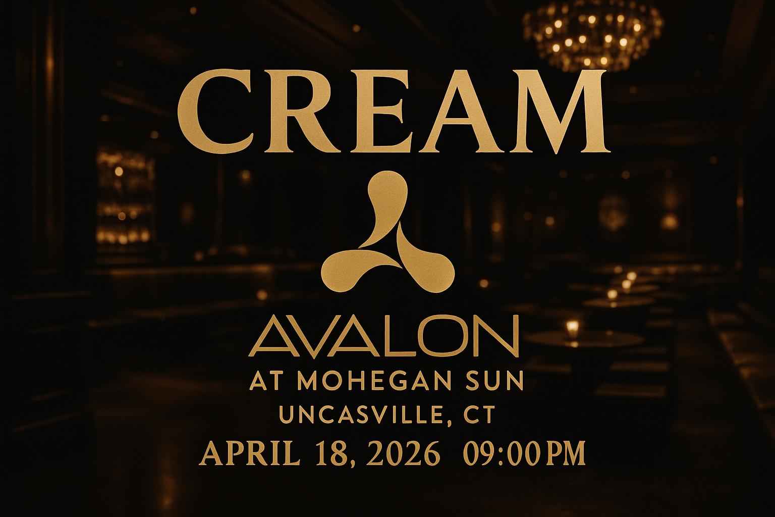 Cream begins at 900 PM at Avalon At Mohegan Sun in Uncasville on April 18 2026. Early arrival is recommended for the best experience.
