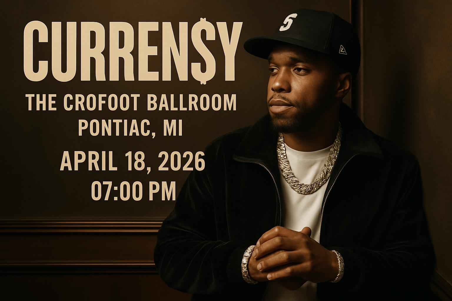 Experience Curren$y live at The Crofoot Ballroom in Pontiac MI on April 18 2026 at 7:00 PM. Secure exclusive Curren$y The Crofoot Ballroom coupon codes and enjoy top savings on tickets with RSVP Event Agency. This event delivers a high-energy concert experience in metro Detroit with premium promo code access and verified ticket deals for fans searching for discounts and event details near Pontiac.