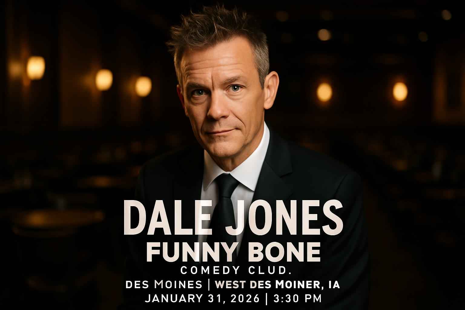 The Dale Jones comedy show is scheduled for January 31 2026 at 0630 PM in West Des Moines IA