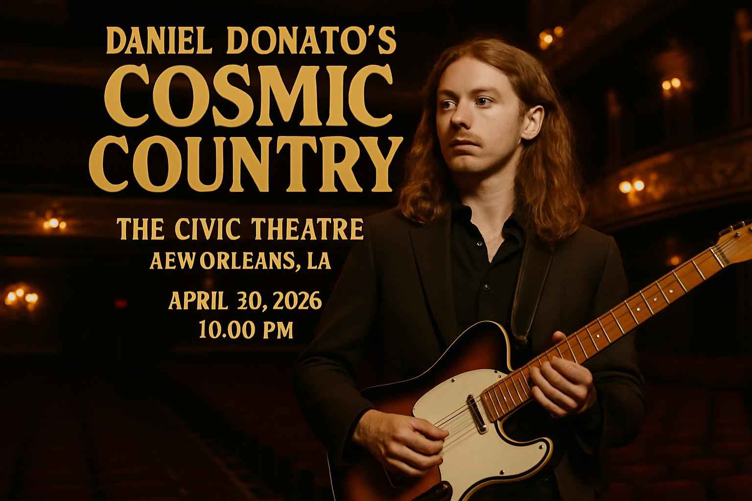 Daniel Donato’s Cosmic Country is coming to The Civic Theatre in New Orleans LA on April 30 2026 at 10:00 PM. Experience a fusion of Americana country and psychedelic rock in the heart of New Orleans. This high-energy live music event draws fans from across Louisiana and the Gulf Coast seeking an unforgettable night of guitar-driven performances and cosmic vibes. Secure exclusive RSVP Event Agency promo codes for Daniel Donato tickets and enjoy the best value for this must-see concert.