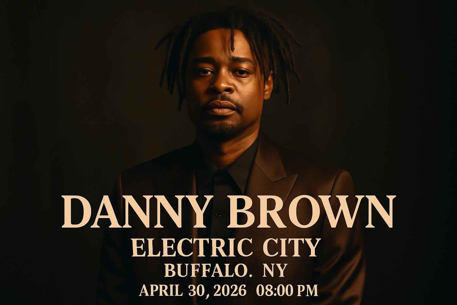 The Danny Brown concert at Electric City takes place on April 30 2026 starting at 8 PM. Electric City is located in downtown Buffalo NY near local dining and nightlife. Find ticket options for general admission and VIP access. Early ticket purchases are recommended due to high demand. RSVP Event Agency provides Buffalo NY concert-goers with secure ticketing and updated event information.