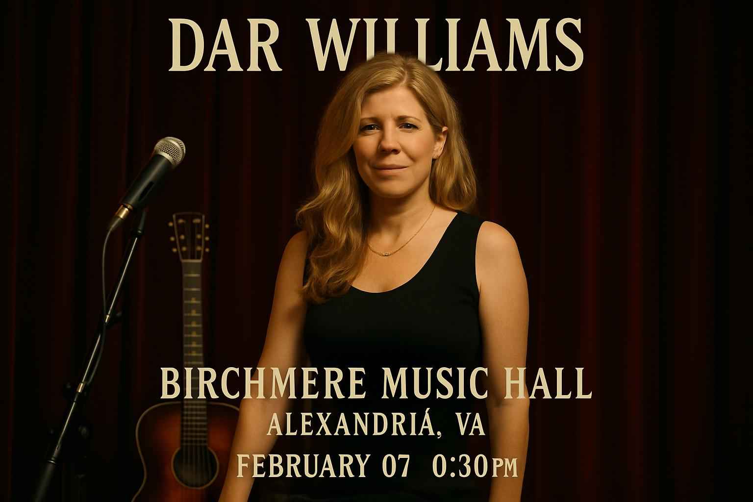 Experience Dar Williams live at Birchmere Music Hall in Alexandria VA on February 07 2026 at 07:30 PM. Secure exclusive Dar Williams Birchmere Music Hall promo codes through RSVP Event Agency. Find ticket savings tips event news and local insights for this one-night performance from a celebrated American folk artist. Get local Birchmere Music Hall event details and coupon code offers for the best seats while they last.