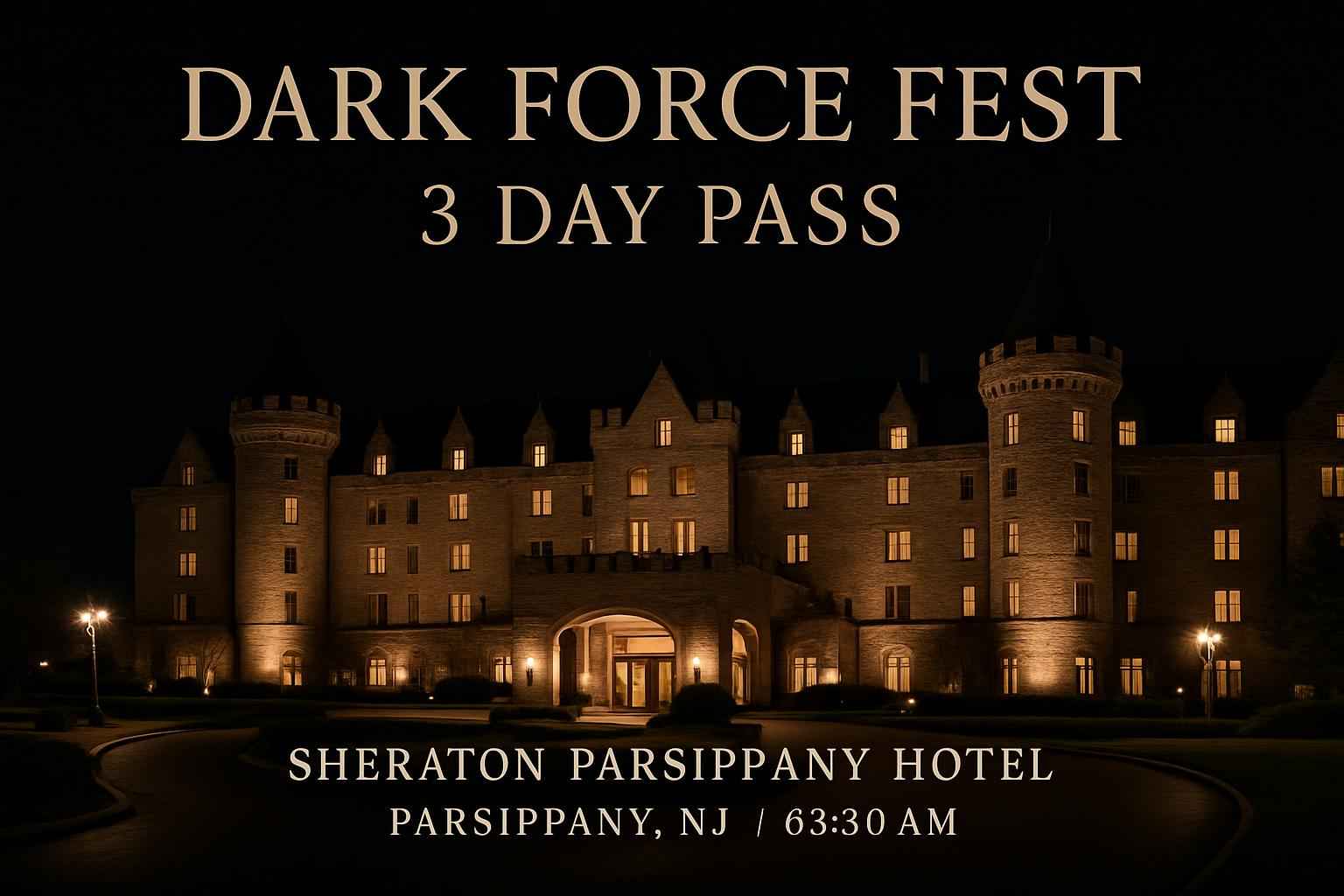 The Dark Force Fest 3 Day Pass grants access to all festival performances, parties, and activities at the Sheraton Parsippany Hotel from May 01 to May 03 2026.