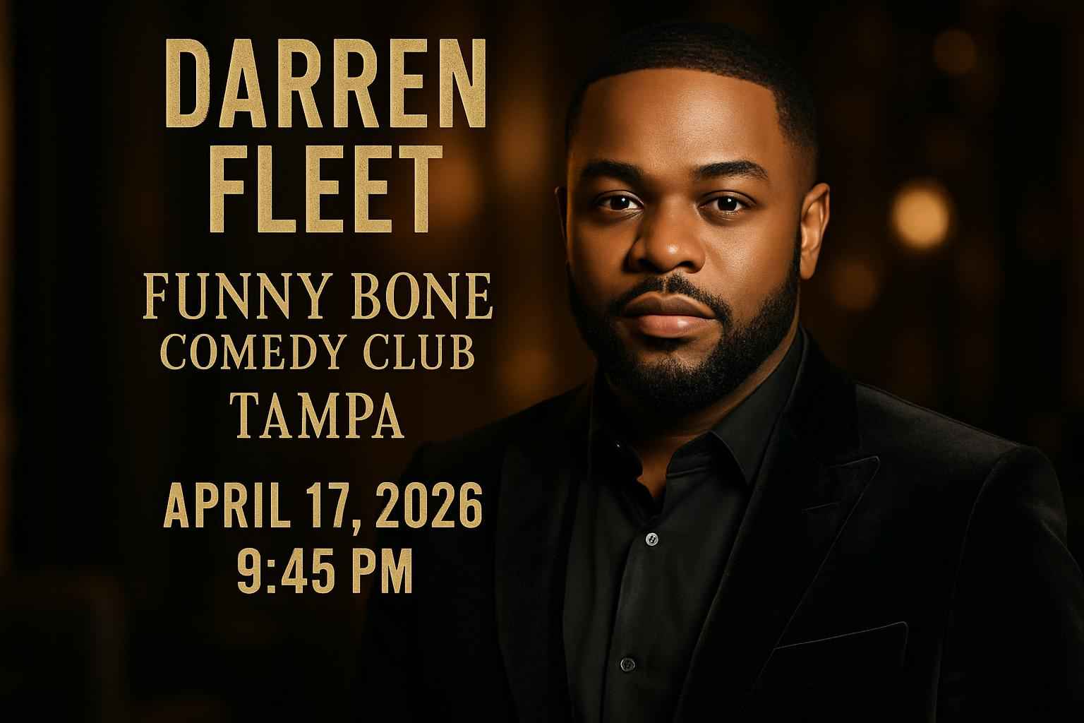 Experience a night of non-stop laughter with Darren Fleet at Funny Bone Comedy Club in Tampa FL on April 17 2026 at 945 PM. This live comedy event brings one of the most electrifying stand-up performers to the heart of Tampa offering an unforgettable evening for fans and comedy lovers. Save on your tickets now with exclusive promo codes from RSVP Event Agency. Secure your seats for a top-rated comedy show and enjoy real savings at checkout.