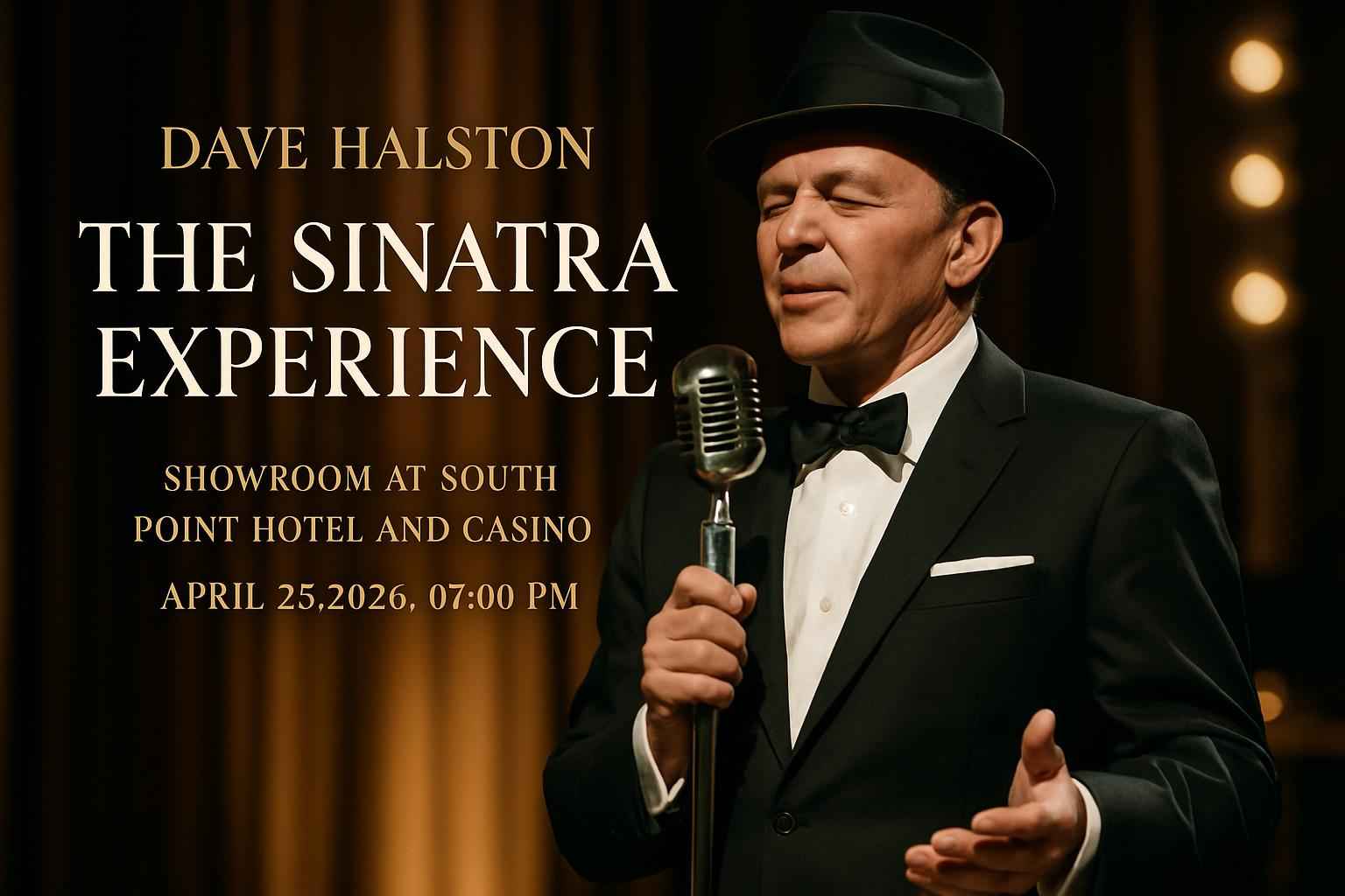 Experience Dave Halston – The Sinatra Experience at the Showroom at South Point Hotel And Casino in Las Vegas NV on April 25 2026 at 07:00 PM. Enjoy the legendary sound of Frank Sinatra brought to life by Dave Halston in a tribute performance that attracts fans from across the region. This Las Vegas event delivers a classic Vegas show atmosphere with top-tier live music and entertainment value for locals and visitors.