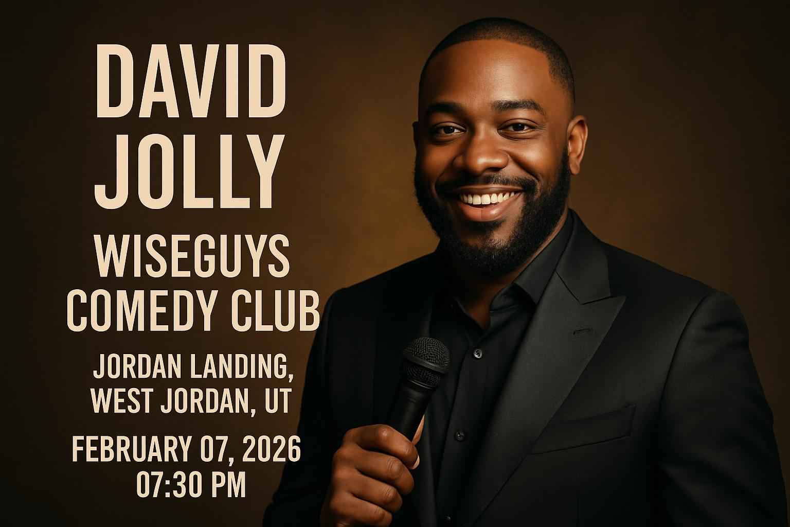 Experience standout comedy at the David Jolly show at Wiseguys Comedy Club Jordan Landing in West Jordan UT on February 07 2026 at 730 PM. Secure your seat at one of Utahs most popular comedy venues and enjoy a night filled with laughter high-energy performances and crowd-pleasing punchlines. RSVP Event Agency delivers exclusive promo codes for David Jolly Wiseguys Comedy Club Jordan Landing so locals and visitors can access the best ticket savings available now.