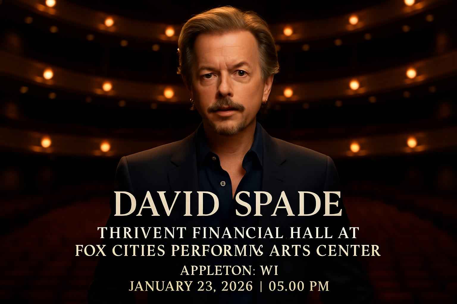 David Spade brings his signature humor to Thrivent Financial Hall at Fox Cities Performing Arts Center in Appleton WI for one night only. Doors open at 700 PM with the show starting at 800 PM. This popular live comedy event draws visitors from Appleton Neenah Menasha and the Fox Cities region. Plan your night out with parking tips seating charts and local dining recommendations for a seamless experience.