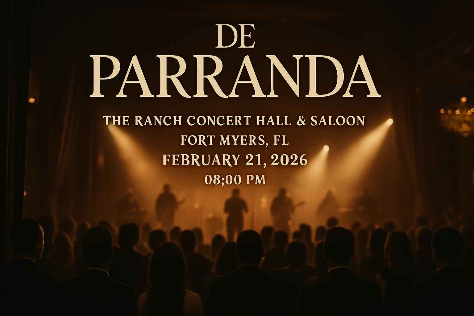 Experience De Parranda at The Ranch Concert Hall in Fort Myers on February 21, 2026, at 8 PM. Enjoy live Latin music, dancing, VIP seating, and premium sound. Secure exclusive promo codes and discounts through RSVP Event Agency for savings on tickets. Onsite parking and modern amenities ensure a memorable night at this vibrant Latin music event.