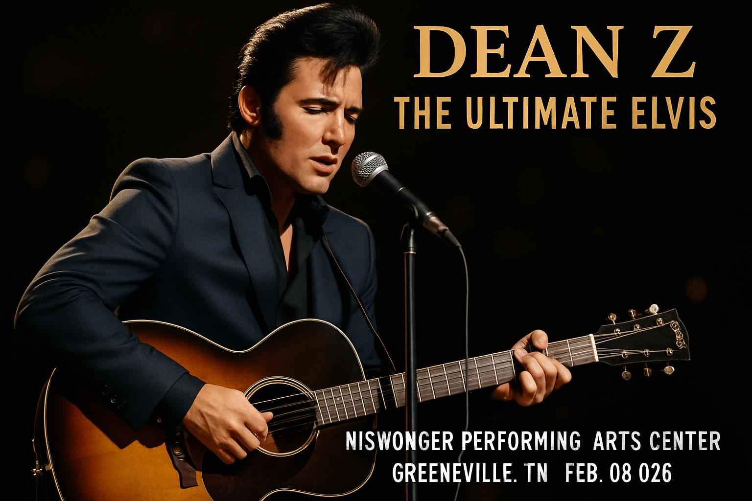 Dean Z – The Ultimate Elvis takes place at Niswonger Performing Arts Center located at 212 Tusculum Blvd Greeneville TN on February 09 2026 from 7 PM. Expect an unforgettable Elvis tribute concert with authentic performances and state-of-the-art production. Arrive early for the best parking and seating options in Greeneville.
