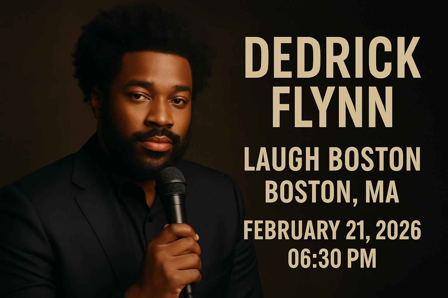 Experience Dedrick Flynn live at Laugh Boston in Boston MA on February 21 2026 at 0630 PM. This premier comedy event draws fans from all over Greater Boston searching for an unforgettable night of laughter and entertainment. Secure exclusive Dedrick Flynn – Laugh Boston coupon codes from RSVP Event Agency and unlock top savings on your tickets today.