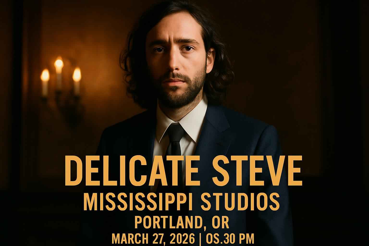Delicate Steve is scheduled to begin at 900 PM on March 27 2026. Doors open at 800 PM for early entry.