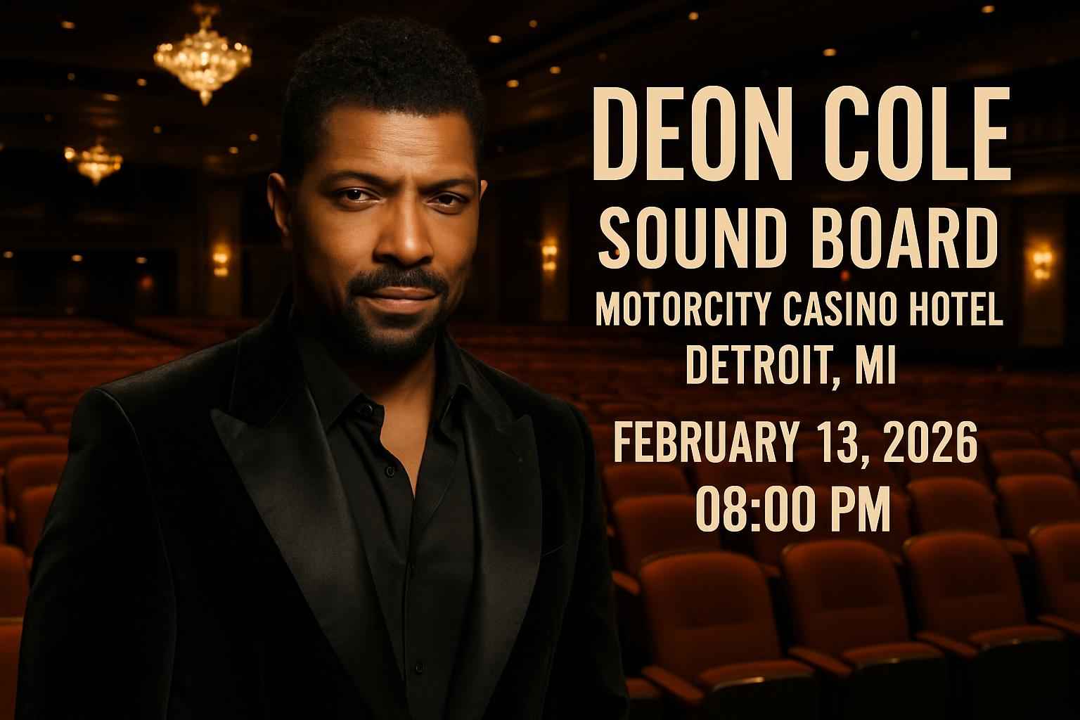 Deon Cole brings his award-winning comedy to Sound Board Detroit on February 13 2026. The show starts at 8 PM. This one-night performance promises laughter and entertainment in a vibrant casino setting. Reserve your seats now to experience Deon Cole up close in Detroit MI.