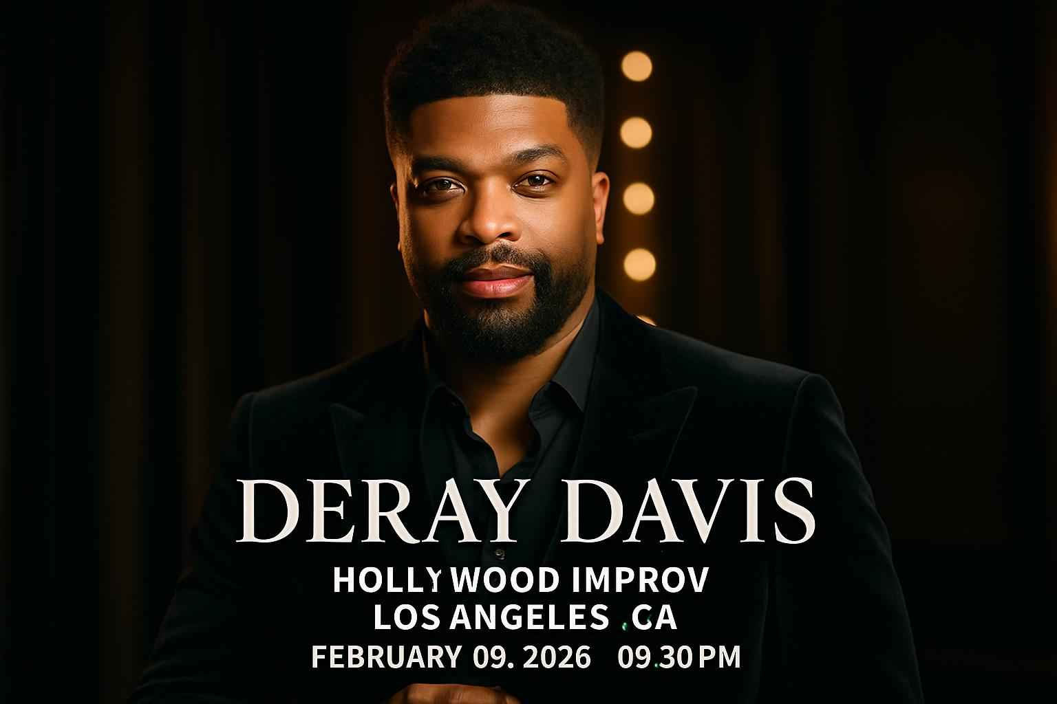 DeRay Davis brings his signature humor to Hollywood Improv located at 8162 Melrose Ave Los Angeles CA. The show takes place on February 09 2026 starting at 0930 PM. Arrive early to enjoy the full comedy experience and vibrant atmosphere that makes Hollywood Improv a top destination for live entertainment in Los Angeles.