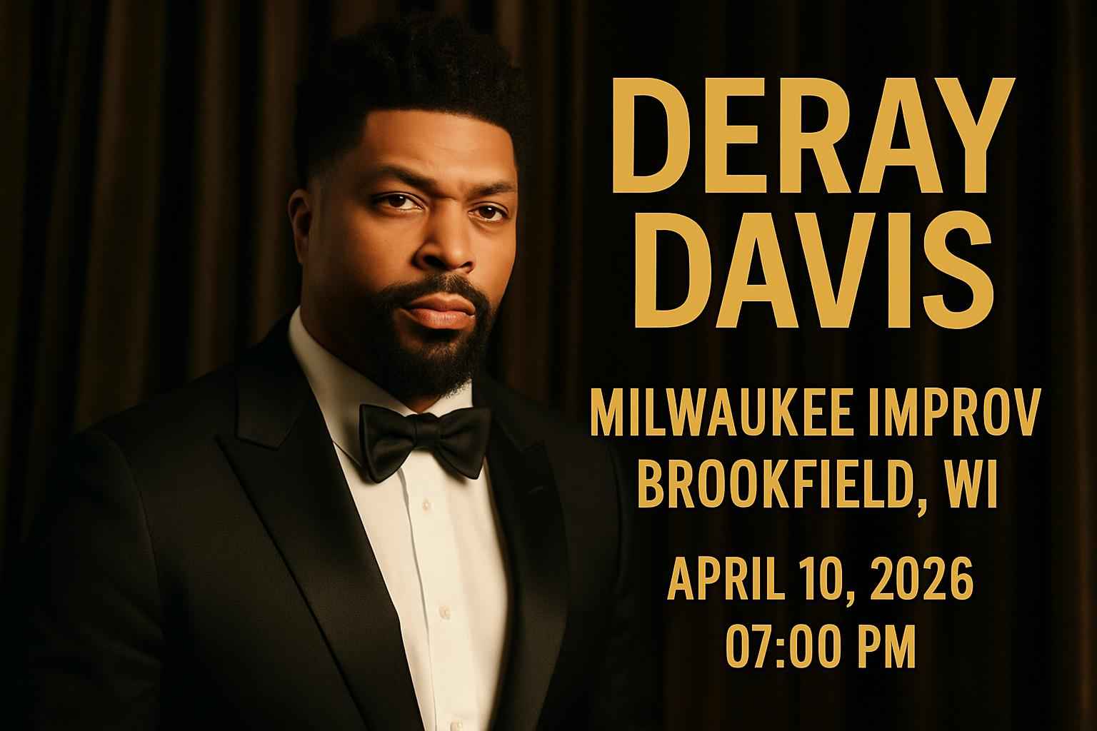 DeRay Davis is scheduled to perform at 7 PM on April 10 2026 at Milwaukee Improv in Brookfield WI.