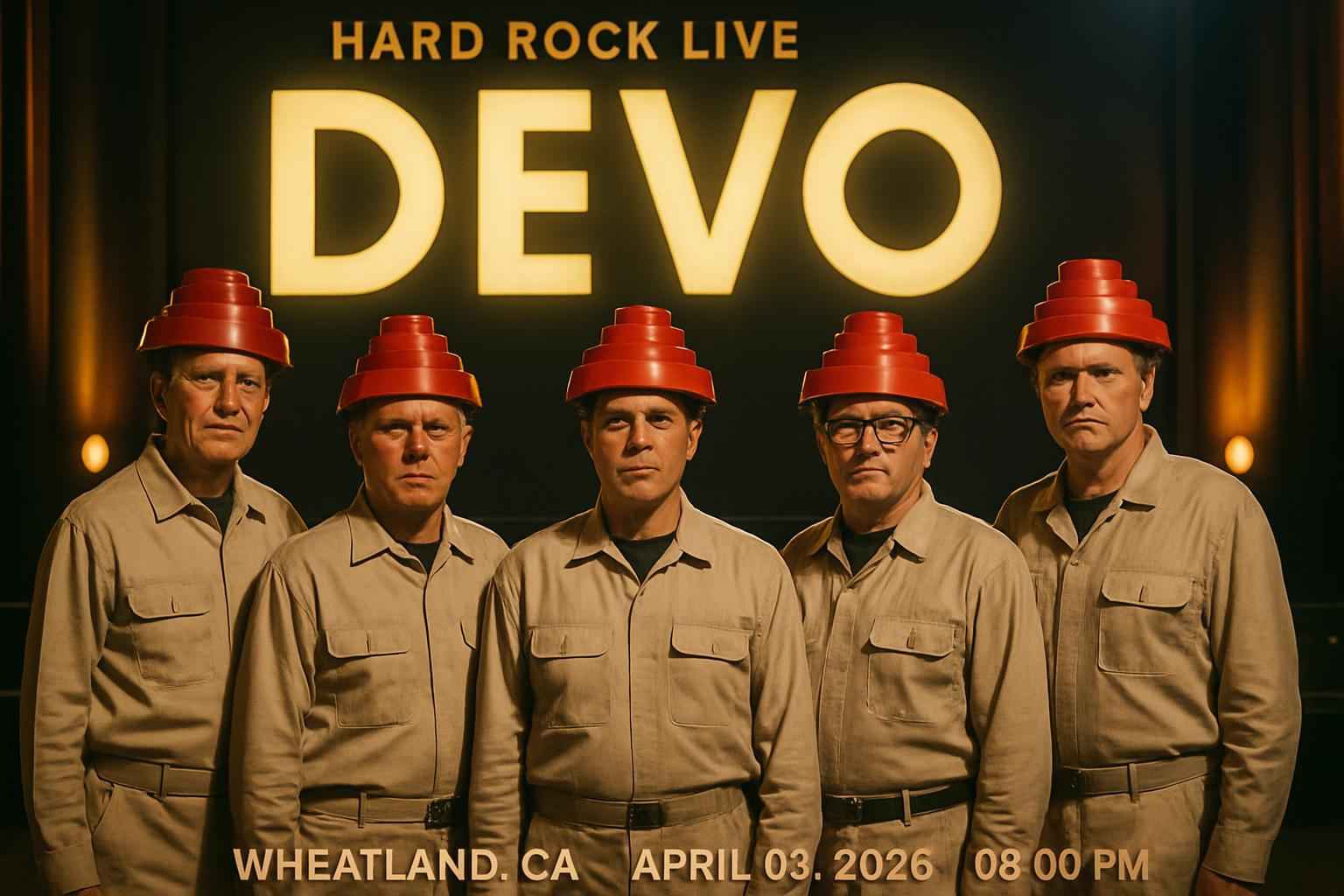 Devo brings their iconic sound to Hard Rock Live Sacramento located in Wheatland CA just outside Sacramento. The show is scheduled for April 03 2026 at 8 PM. Guests enjoy a high-energy performance with advanced lighting and sound in a premium concert venue. Hard Rock Live offers convenient parking premium seating and accessible amenities for fans traveling from Sacramento Yuba City and nearby regions.