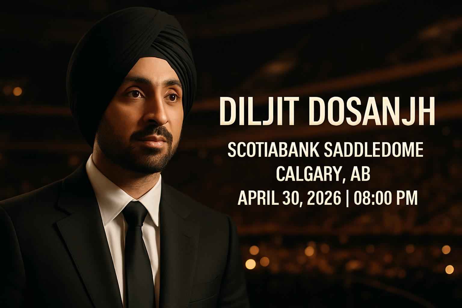 Experience Diljit Dosanjh live at Scotiabank Saddledome in Calgary AB on April 30 2026 at 8:00 PM. Secure your spot for one of the top Punjabi music concerts of the year in Calgary. RSVP Event Agency provides trusted access and exclusive promo codes for Diljit Dosanjh tickets. Join music fans across Alberta and enjoy a night of high-energy performances and chart-topping hits from one of the biggest names in Indian music.