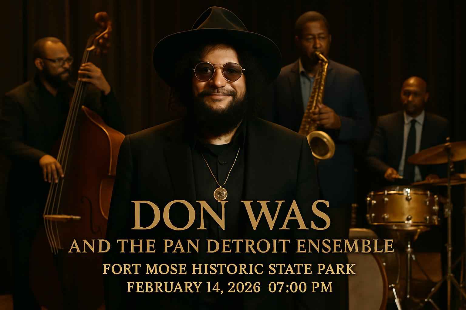 Experience Don Was and The Pan Detroit Ensemble live at Fort Mose Historic State Park, St Augustine, on February 14, 2026, at 7 PM. Enjoy Detroit soul and jazz in a historic outdoor setting. Secure tickets early via RSVP Event Agency for exclusive discounts, verified coupon codes, VIP options, parking info, and last-minute deals. Act fast—tickets may sell out.