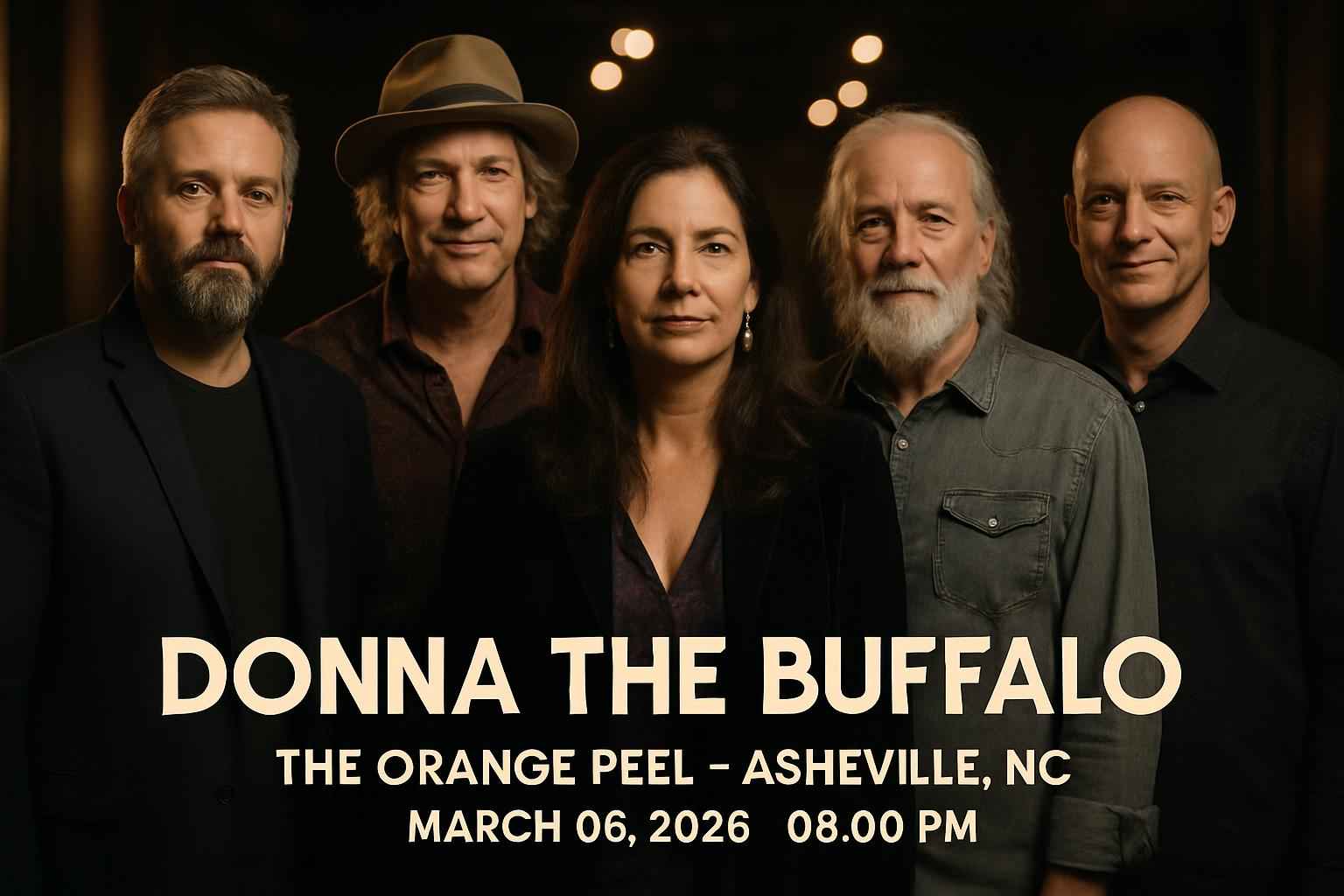 Donna the Buffalo returns to The Orange Peel in Asheville for a one-night event on March 06 2026. Doors open at 7 PM and the show starts at 8 PM. The Orange Peel at 101 Biltmore Ave is renowned for its excellent acoustics and welcoming local atmosphere. Experience an unforgettable night with Donna the Buffalo’s signature Americana and roots rock sound.