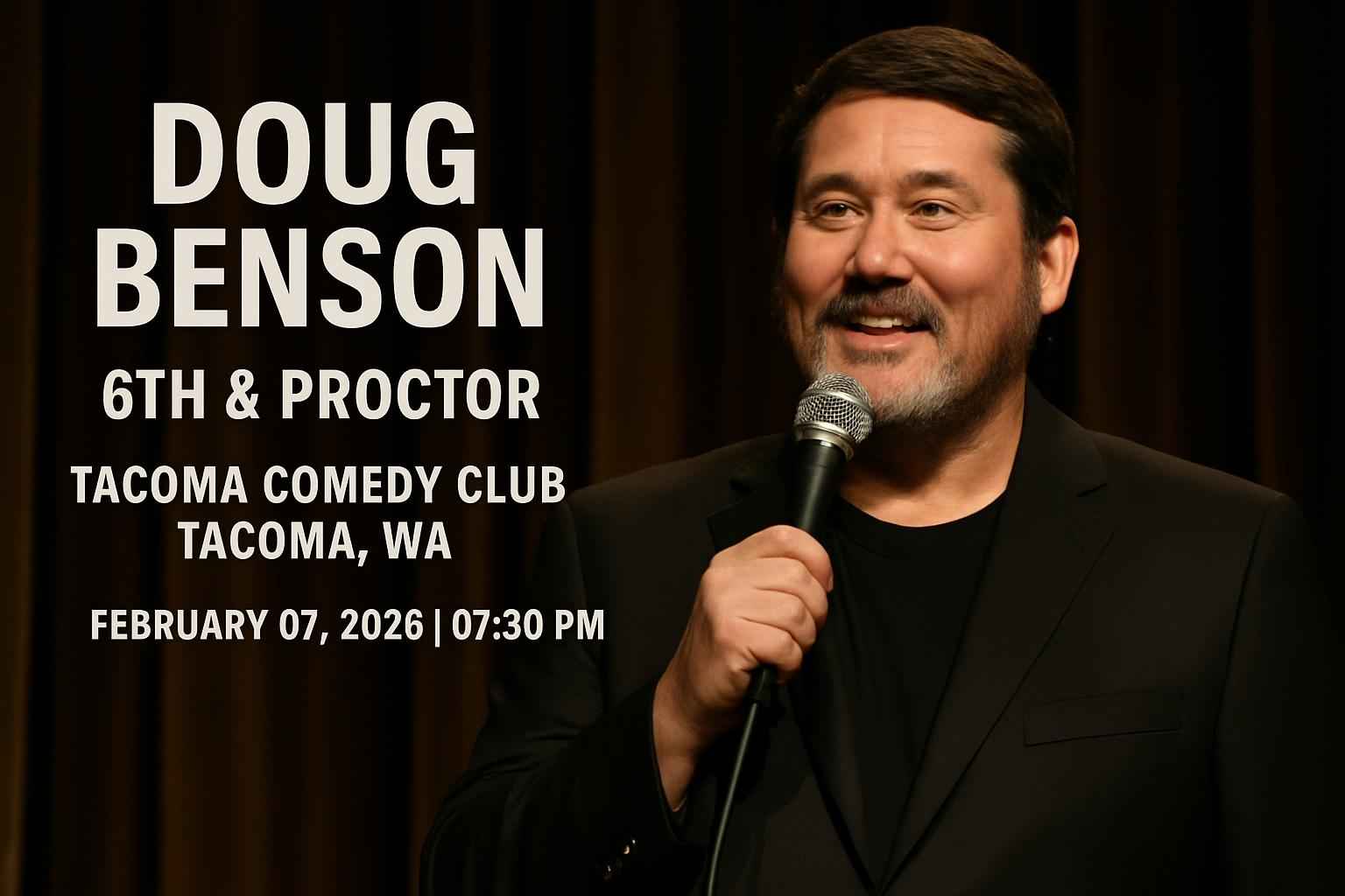 Doug Benson will perform at 0730 PM at Tacoma Comedy Club 6th and Proctor on February 7 2026. Doors open at 630 PM.