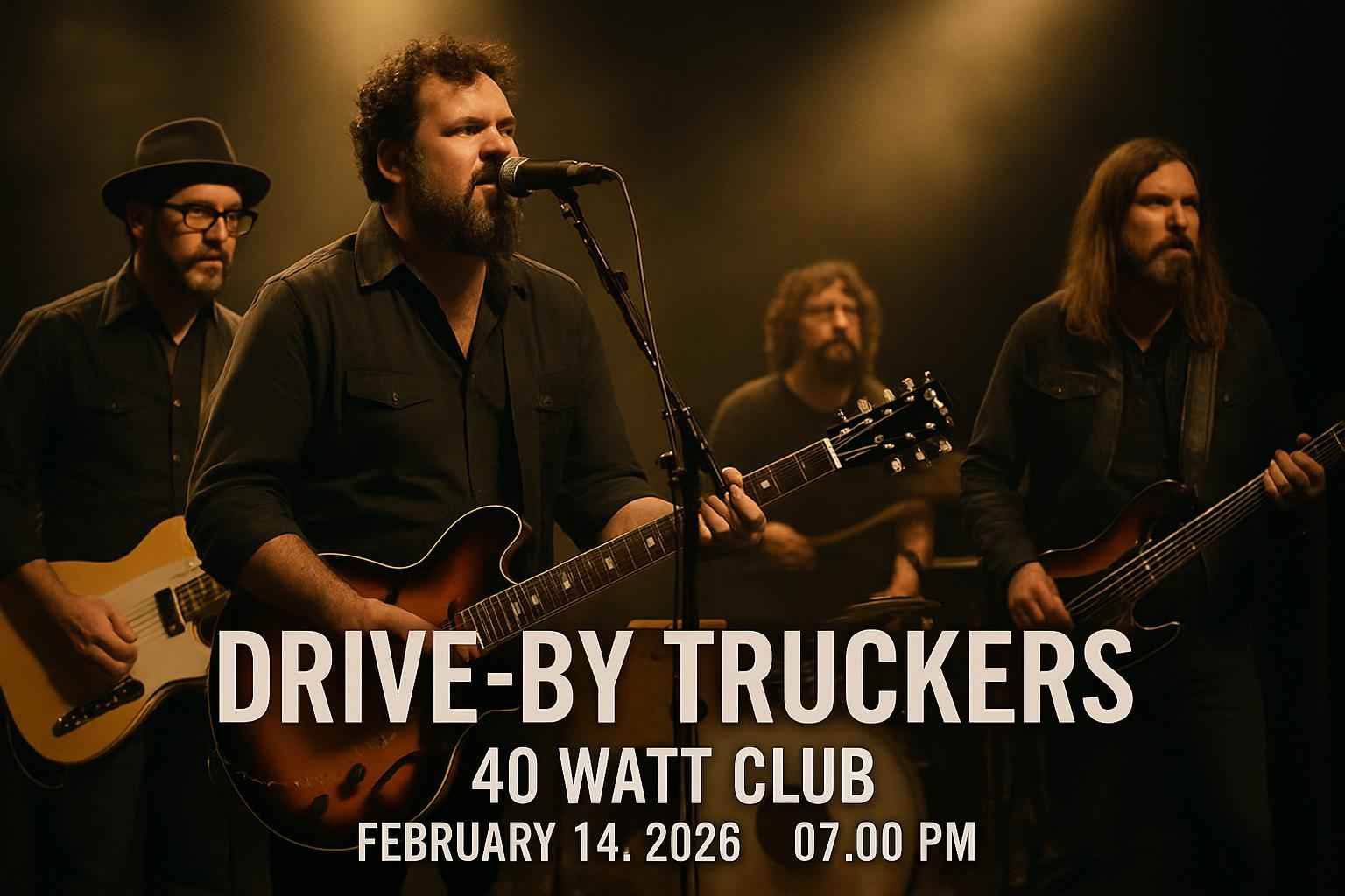 Experience Drive By Truckers live at the 40 Watt Club in Athens GA on February 14 2026 at 7:00 PM. Secure your spot at one of the most anticipated Athens concerts with exclusive RSVP Event Agency promo codes. Discover ticket discounts event details and insider tips for this legendary night at the iconic 40 Watt Club.