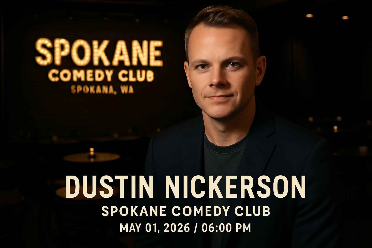 Dustin Nickerson brings his witty stand-up to Spokane Comedy Club at 315 W Sprague Ave in Spokane WA. The show starts at 6:00 PM on May 01 2026. Enjoy an evening filled with laughter in one of Spokane’s favorite comedy venues. Perfect for date night group outings or comedy fans searching for Spokane live events.