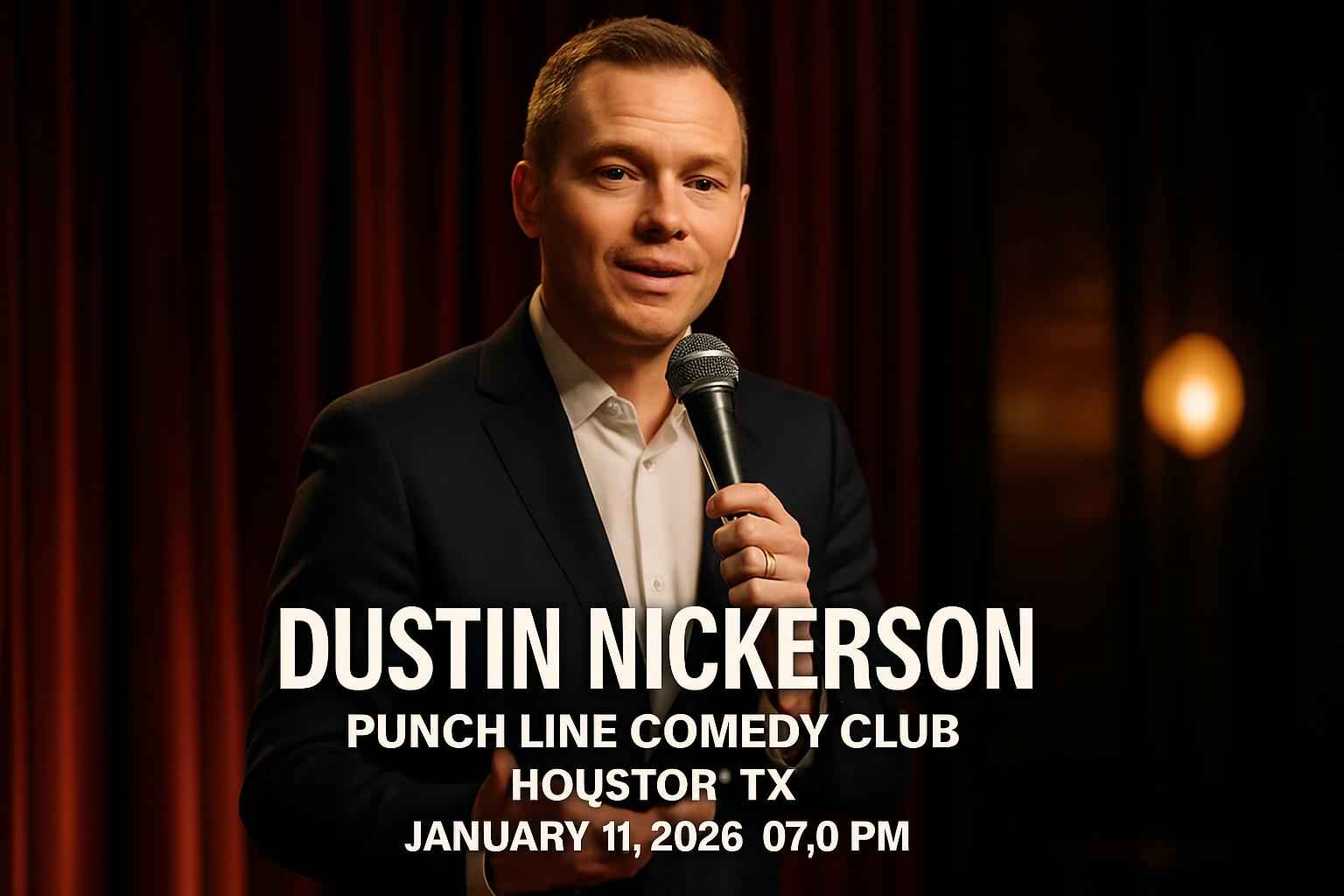 Dustin Nickerson brings his acclaimed stand-up routine to Punch Line Comedy Club Houston located at 123 Main Street Houston TX. This one-night event on January 11 2026 at 7:00 PM features sharp-witted comedy and relatable storytelling. The venue offers easy parking ADA accessibility and a full bar for a complete comedy night out. Plan your visit and enjoy premium seating options for an unbeatable live entertainment experience in Houston.