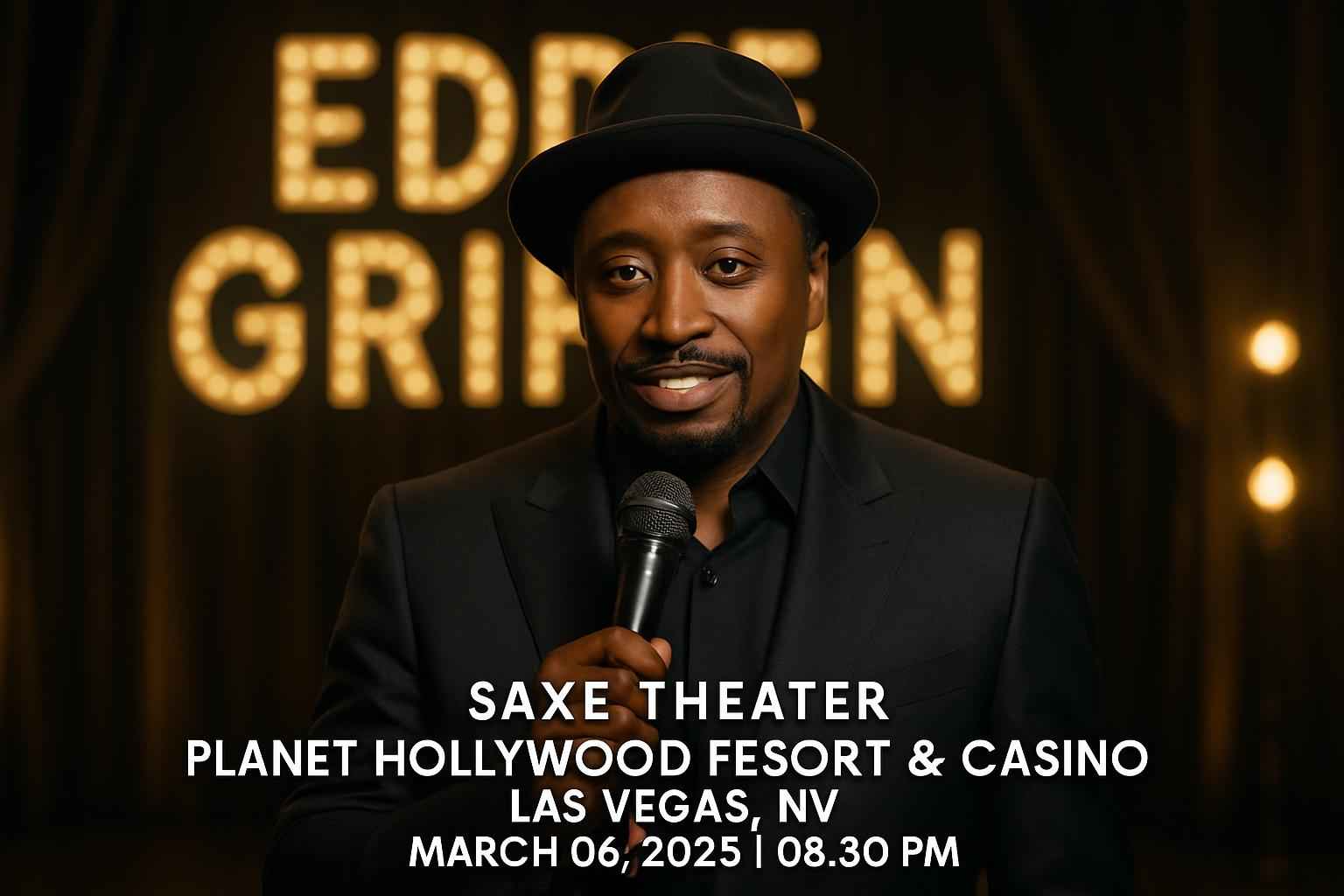 Experience Eddie Griffin live at Saxe Theater inside Planet Hollywood Resort and Casino in Las Vegas NV on March 6 2026 at 830 PM. Secure your spot for an unforgettable night of comedy and entertainment at one of the most iconic venues on the Las Vegas Strip. RSVP Event Agency gives you exclusive access to verified details and valuable promo codes for this top-rated Las Vegas comedy event.