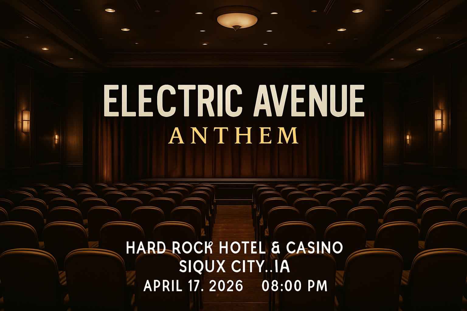 Experience the electrifying sounds of Electric Avenue at Anthem inside Hard Rock Hotel and Casino in Sioux City IA on April 17 2026 at 8:00 PM. Secure the best seats and exclusive promo codes from RSVP Event Agency for this must-attend live music event. Save money while enjoying top-tier entertainment in one of Iowa’s most iconic venues with exclusive deals available now.