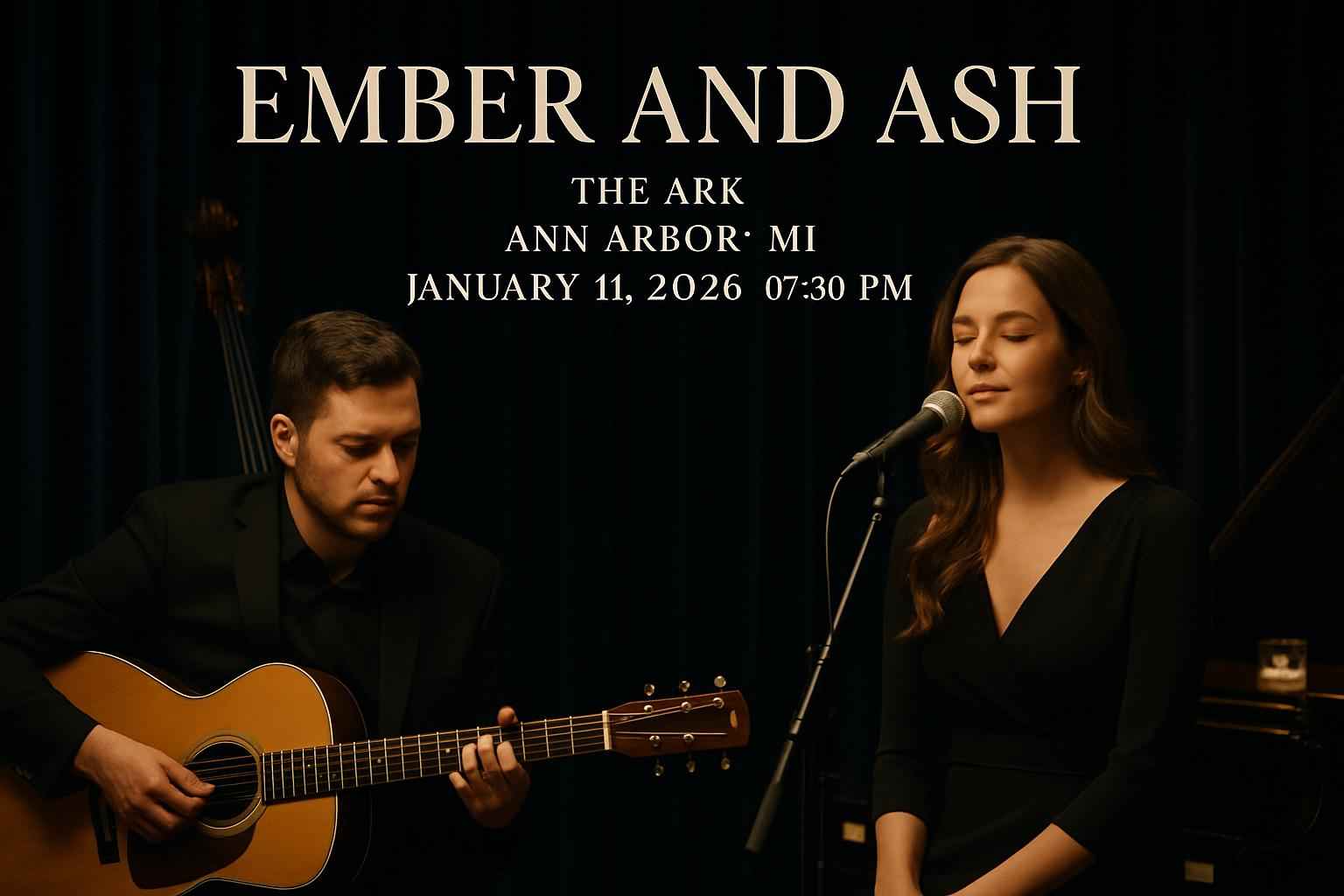 Ember and Ash takes the stage at 0730 PM on January 11 2026 at The Ark Ann Arbor MI. Arrive early for the best seating options.
