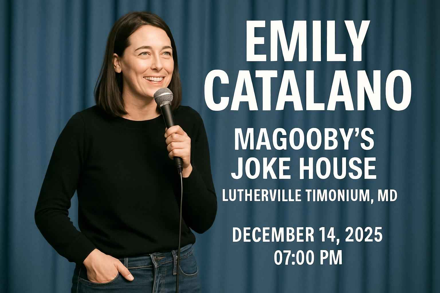 Experience the sharp wit of Emily Catalano live at Magoobys Joke House in Lutherville Timonium MD on December 14 2025 at 0700 PM. Secure exclusive discount codes for Emily Catalano tickets and enjoy savings on one of the top comedy shows near Baltimore. RSVP Event Agency delivers verified promo codes and up-to-date event details for comedy fans looking for the best deals in Lutherville Timonium.