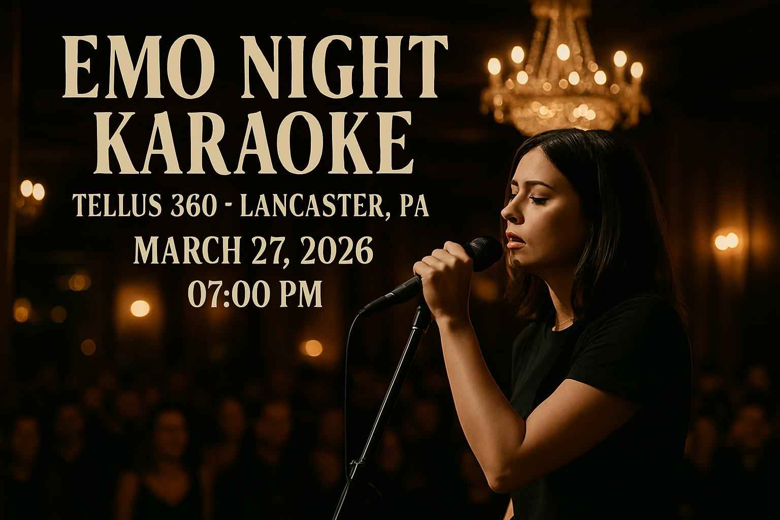 Experience one of Lancaster PAs most anticipated music events at Emo Night Karaoke – Tellus 360 on March 27 2026 at 700 PM. Sing your favorite emo anthems live on stage with a full band and connect with fellow fans in an energetic and unforgettable atmosphere right in the heart of downtown Lancaster. Secure exclusive RSVP Event Agency promo codes for Emo Night Karaoke and maximize your savings when planning your night out.