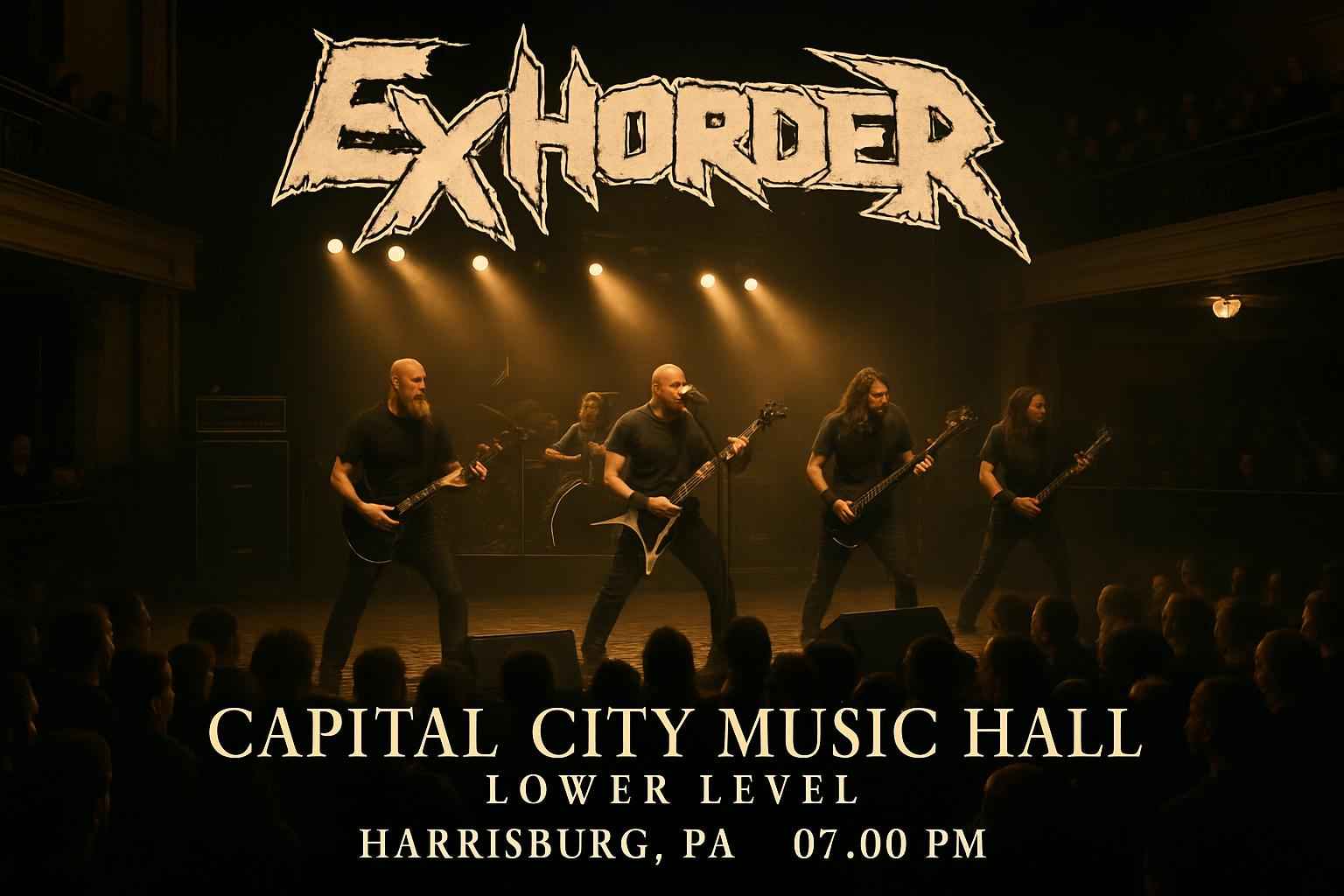 Exhorder delivers a high-energy performance at one of Harrisburgs top venues. The Capital City Music Hall Lower Level is known for its intimate setting and superior acoustics. Doors open at 7 PM. Attendees are encouraged to arrive early for the best experience. Ticket holders can expect a blend of classic tracks and new music. Search phrases like Exhorder tickets Harrisburg PA and live metal concerts Harrisburg are trending locally for this date.