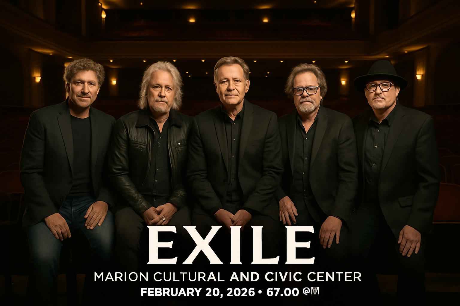 The Exile concert at Marion Cultural and Civic Center begins at 7 PM on February 20 2026. Arriving early is recommended for the best experience.